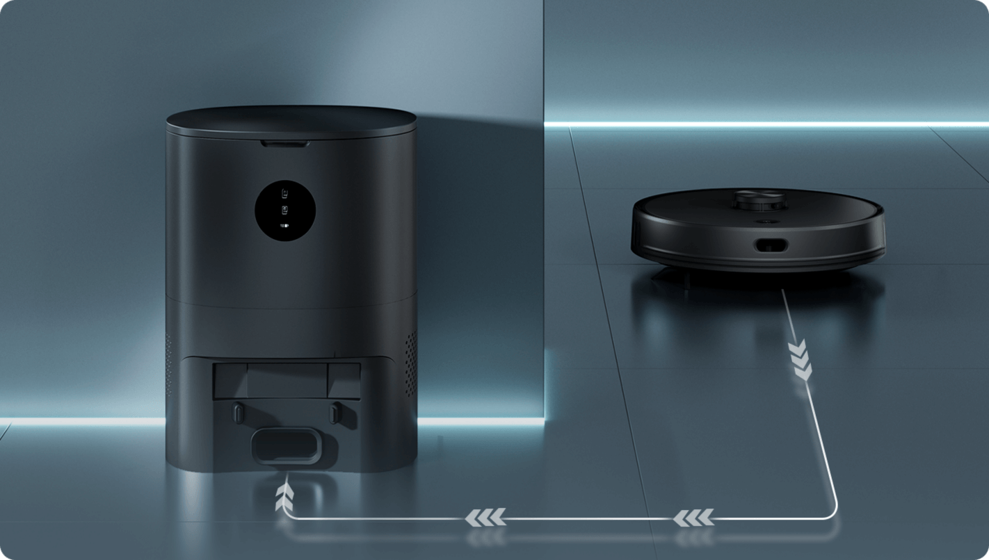 泛互联自主研发的 Auto-cleaning 自动集尘 3.0 技术,机器人每次扫完会自行清理尘盒,